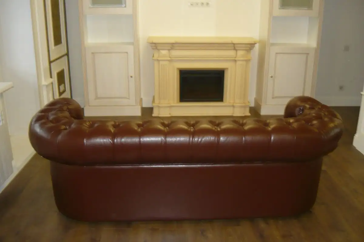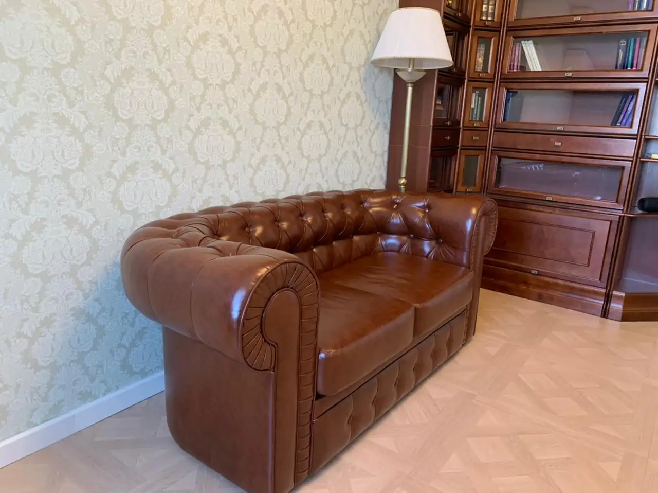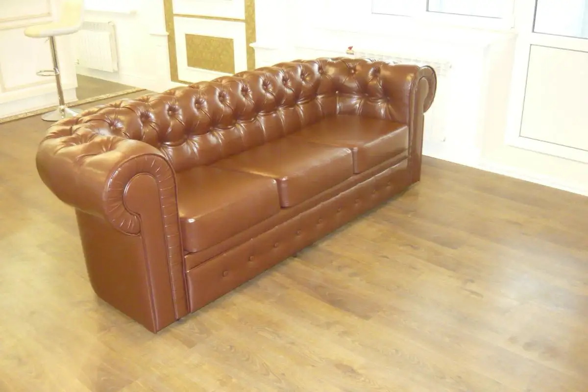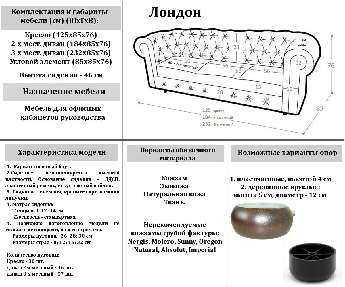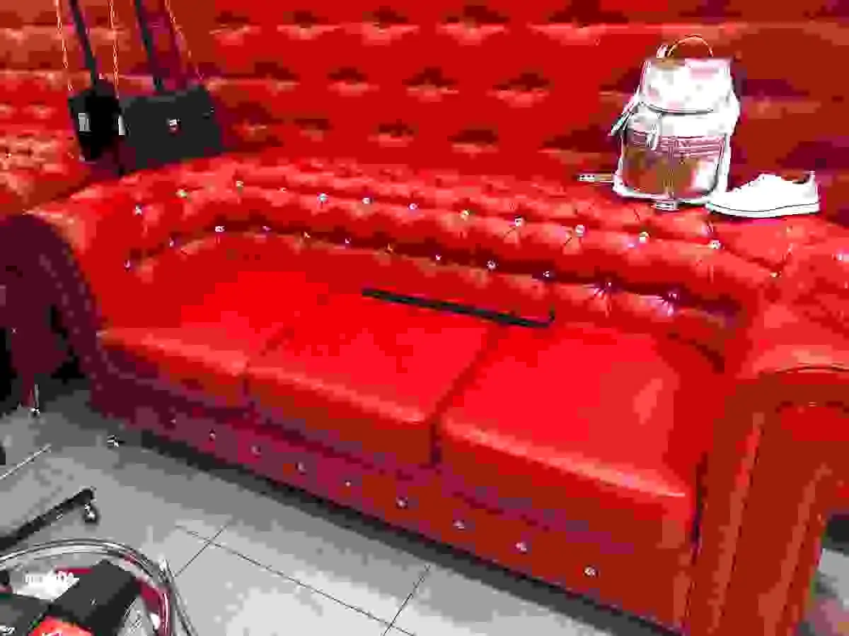 Помимо кафе, офисов мы также делаем мягкую мебель и в частные квартиры. Диван Лондон с трансформацией сделан из ткани типа велюр. Для придания лоска поставили на подлокотники звоздики. Про просьбе покупателя вместо 3-х сидушек были сделаны 2 сидушки. Размер дивана 232х85х76 см.