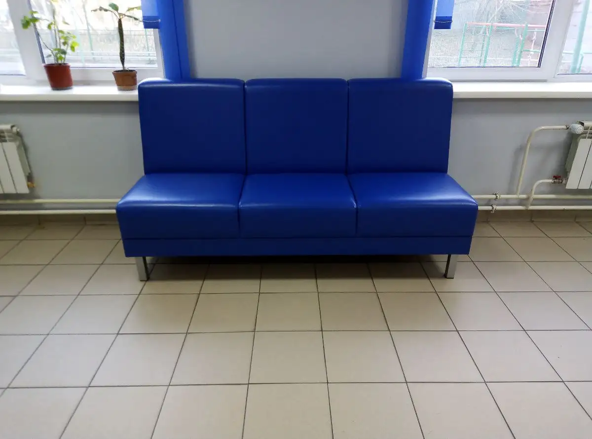 Для холла были сделаны офисные диваны серии Сити и большие прямые пуфы. Большая конструкция из пуфов позволяет на них не только сидеть, но также можно прилечь и отдохнуть. Для комнат ожидания сделаны также яркие диваны серии Сити, но только с раздельными сидениями.