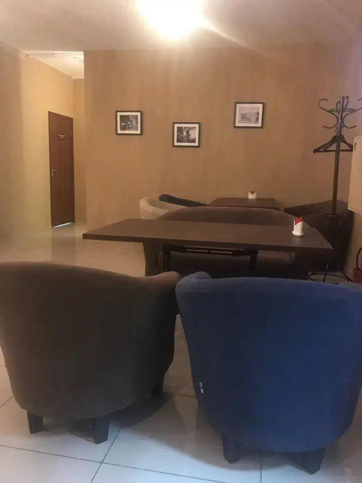 Для кафе были выбраны диваны и кресла серии Соло. Благодаря своим округлым формам эта модель делает помещение более уютным, оригинальным и уникальным. Особую незатейливость диванам и креслам придают деревянные опоры правильной геометрической формы.