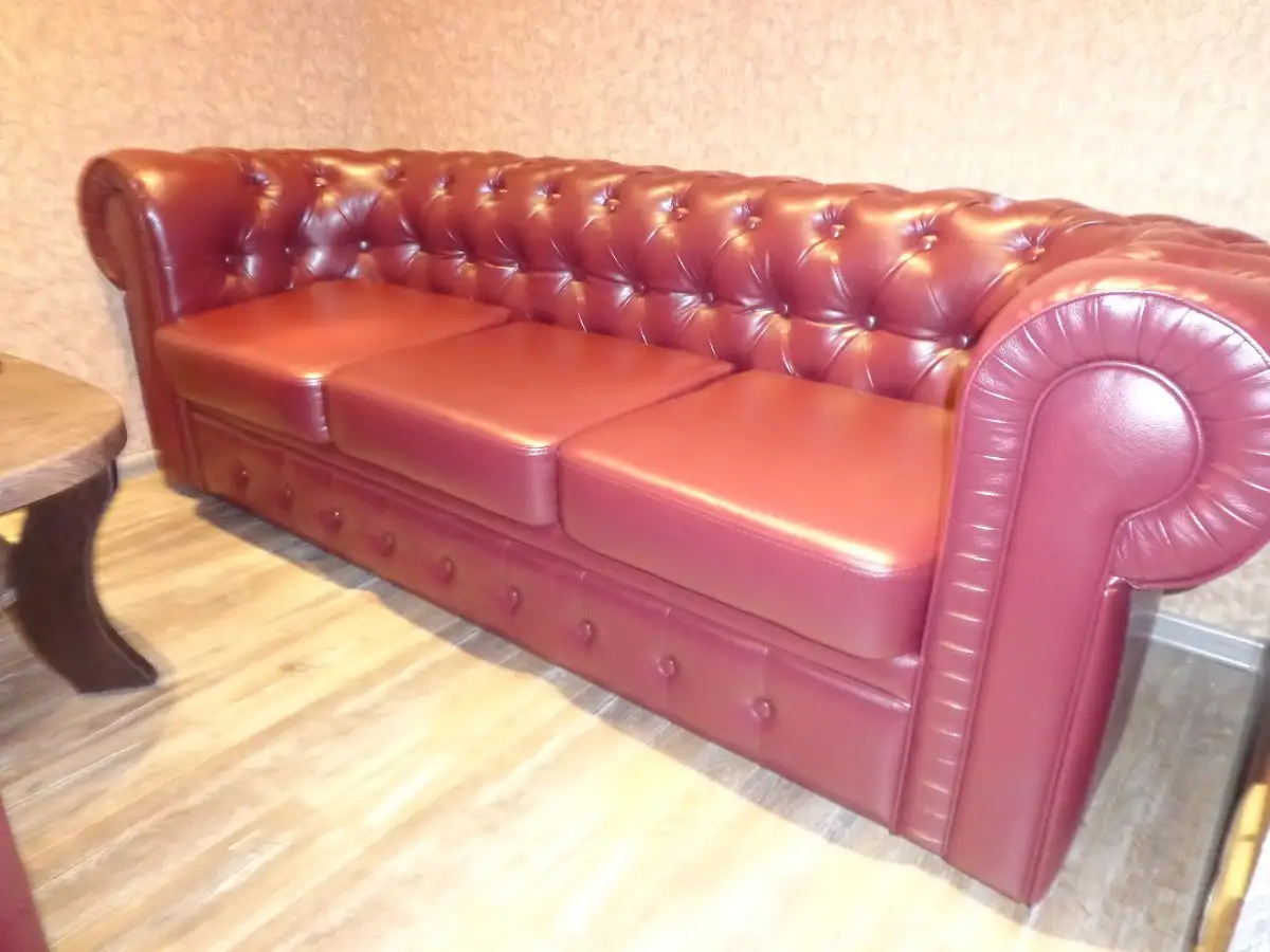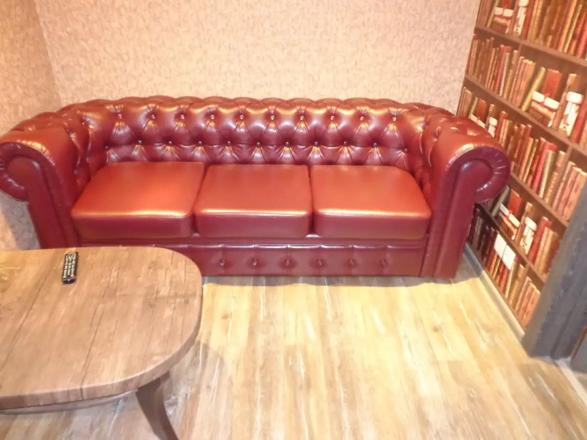 Хостел"Amigos" — место, где чувствуешь себя как дома и в окружении близких или друзей. Во входной зоне стоит двухместный диван"Лондон". Это уже не просто предмет мебели, а часть целой истории. Комната отдыха представлена трехместным диваном"Лондон" и незаменимым дополнением к основной мебели пуфиками"Куб". Как и на диване, на пуфиках присутствует утяжка пуговицами.