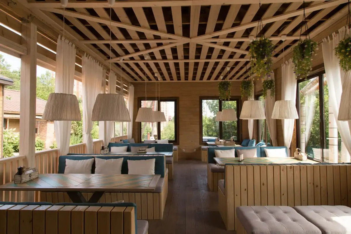 Дизайн проект интерьера для ресторанного комплекса"Гриль парк" включает в себя 2 части: интерьер ресторана и интерьер летней террасы выполненные в мягких постельных тонах.
